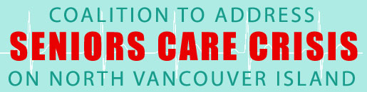 - People in the Campbell River area have inadequate access to publicly funded long term care beds for seniors. This results in Seniors having to wait for months to be allocated a bed in a Care Facility which results in them either occupying an acute care bed in the hospital that is not equipped for this type of care; or they are shipped down island away from their families and loved ones or they languish at home putting incredible strain their families and friends. All this is happening while there are beds in local facilities that were purpose built for the long term care of seniors sitting empty and could be used by VIHA at a fraction of the costs they are paying now. About a month or so ago a group of Campbell River residents called a meeting to see what they could do about this themselves. A Coalition was formed to address the health care crisis facing seniors on North Vancouver Island. As a result of the publicity given by the local newspapers after this meeting the Vancouver Island Health Authority and local politicians are now very aware of the issues. For further details of the Coalition and to be a part of their future efforts go to Seniors 101’s Community Resource Guide, scroll down to the alphabet line and click on the letter “C” and open the “Seniors Care Crisis” banner.